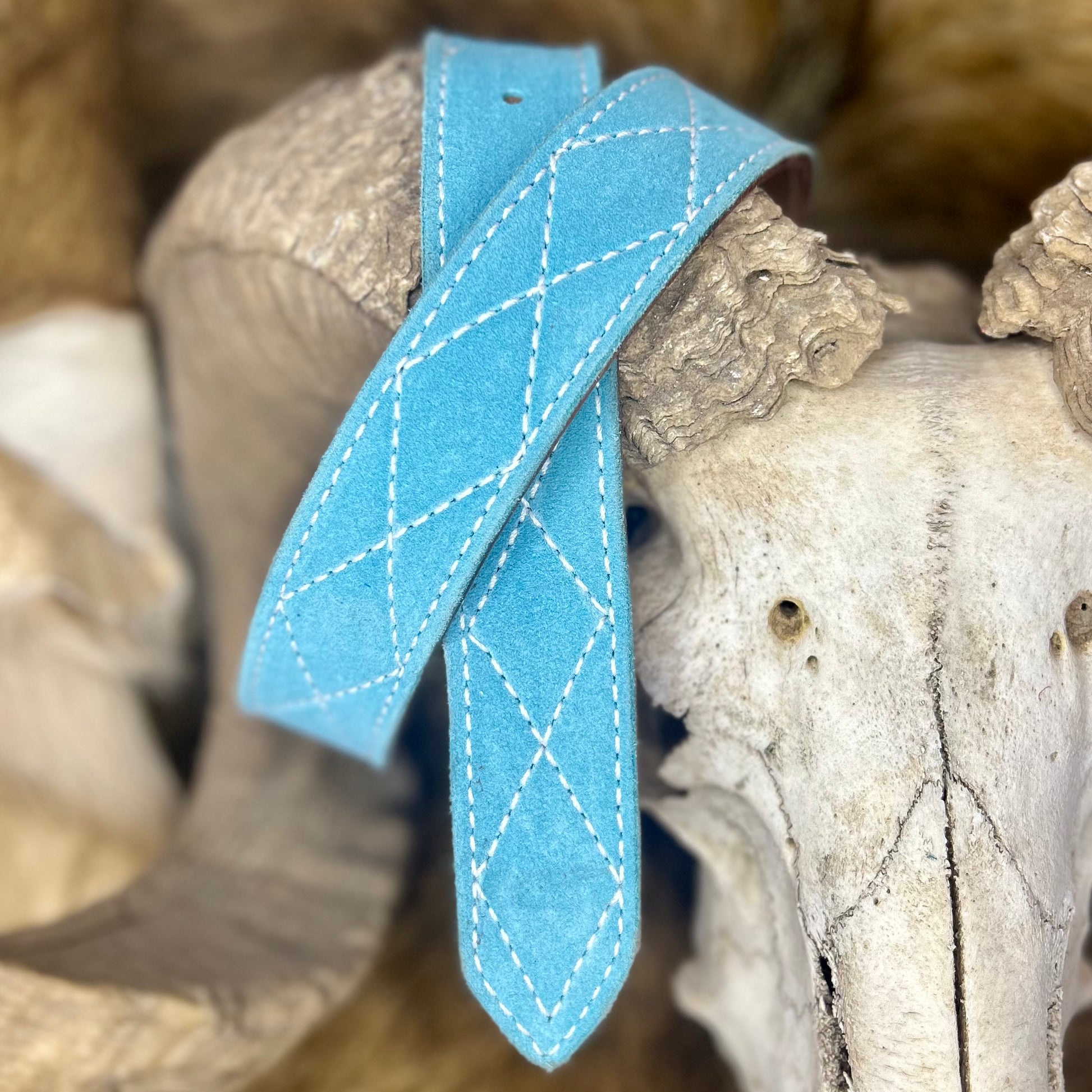 Match your favorite pair of boots with a belt handcrafted by our makers. Suede outer leather. Bovine leather lining. 1 1/2” belt width. Diamond Stitch.